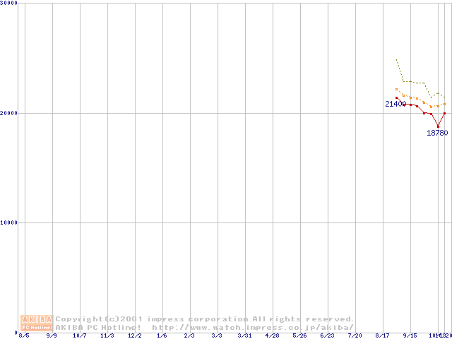 Pentium 4 1.6GHz(478pin)リテールパッケージの価格推移
