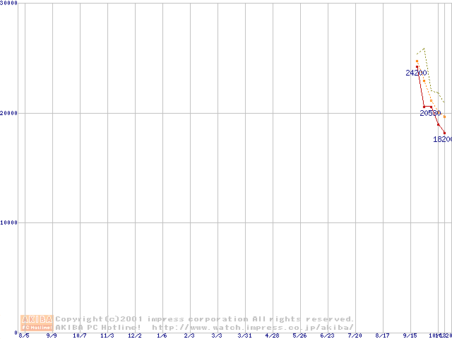 Socket 370 (FC-PGA,FSB 100MHz,L2 256KB)の最安値推移
