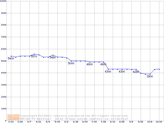 | [↑前グラフ]: | Socket A (Spitfire,PGA,FSB 200MHz,L2 64KB,1.4V)の最安値推移 |