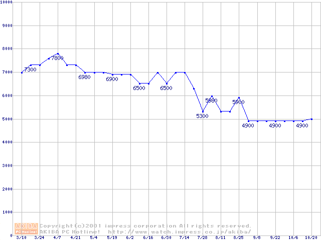 | [↑前グラフ]: | Socket 370 (FC-PGA,FSB 66MHz,L2 128KB)の最安値推移 |