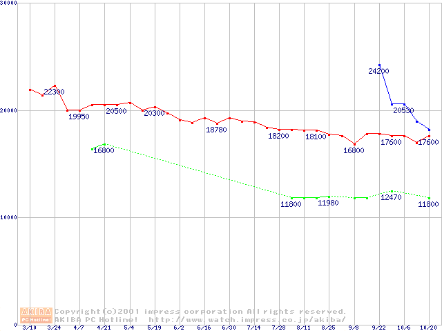 | [↓次グラフ]: | Slot 1 (SECC2,FSB 133MHz,L2 256KB)の最安値推移 |
