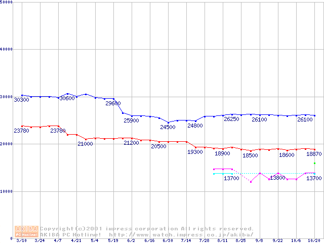 | [↑前グラフ]: | Slot 1 (SECC2,FSB 133MHz,L2 256KB)の最安値推移 |