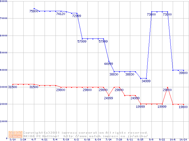 | [↑前グラフ]: | Mobile (Micro-FCPGA,FSB 133MHz,L2 512KB)の最安値推移 |