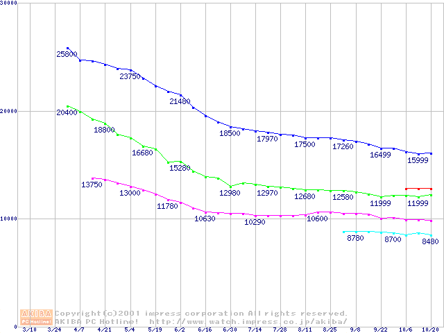 | [↑前グラフ]: | U5 (5400rpm UltraATA/100 512KB)の最安値推移 |