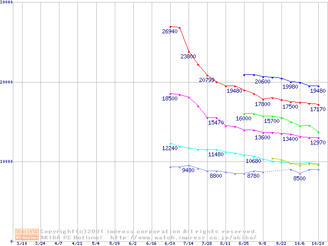 | [↑前グラフ]: | DiamondMax Plus 60 (7200rpm,UltraATA/100)の最安値推移 |
