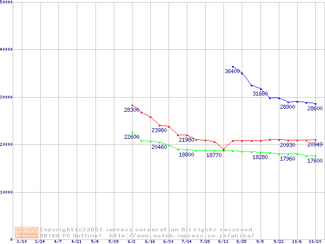 | [↑前グラフ]: | Deskstar 40GV (5400rpm UltraATA/100)の最安値推移 |