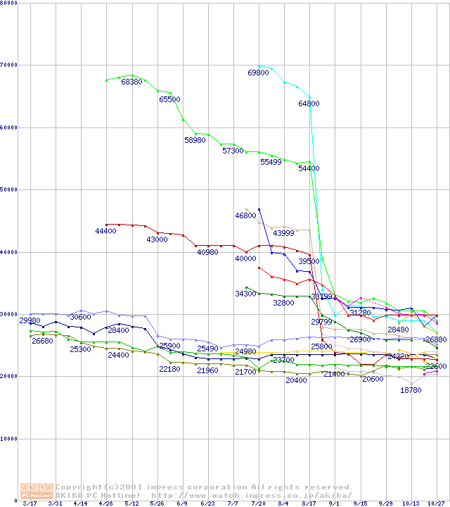 CPU主要製品(最安値2万円~3万円未満)の最安値推移
