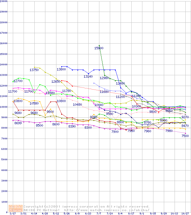 HDD主要製品の最安値推移