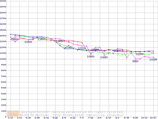 | [↑前グラフ]: | HDD 20GB~30GB未満(7200rpmクラス)の最安値推移 |