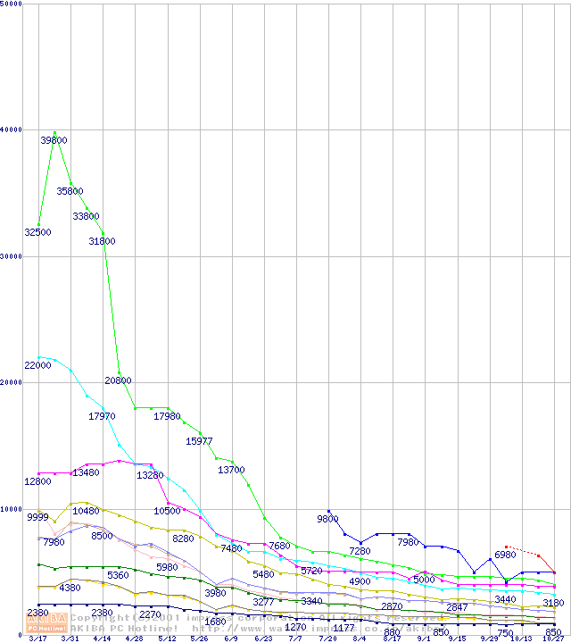 メモリ主要製品の最安値推移