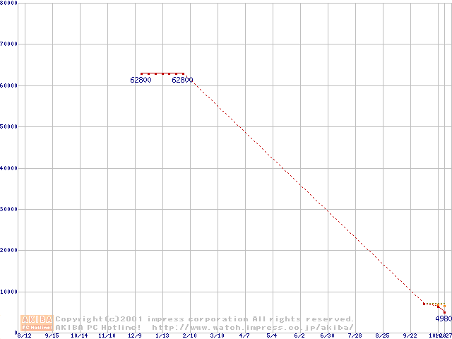 PC133 SDRAM DIMM CasLatency=2の最安値推移