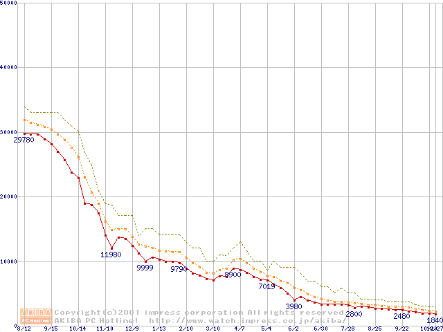 メモリ主要製品の最安値推移
