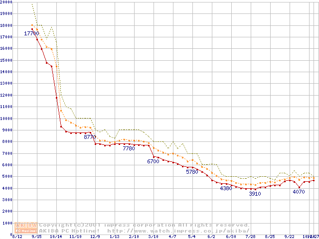Duron 750MHz バルクの価格推移