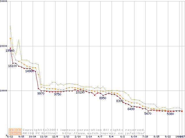 Celeron 700MHz FC-PGA リテールパッケージの価格推移