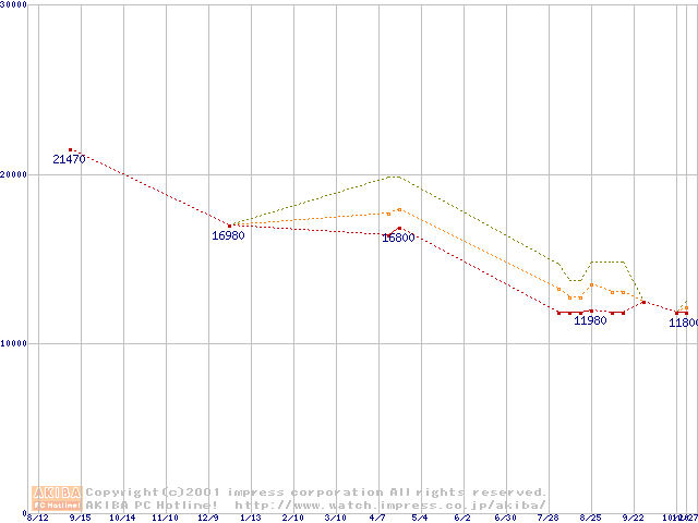 Socket 370 (FC-PGA,FSB 100MHz,L2 256KB)の最安値推移