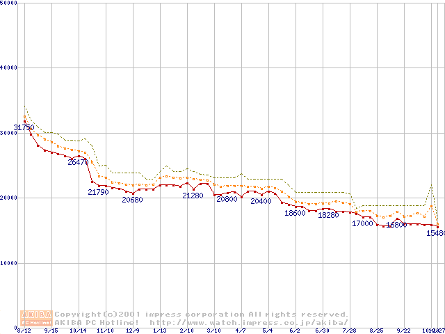 Pentium III 800EBMHz FC-PGA リテールパッケージの価格推移