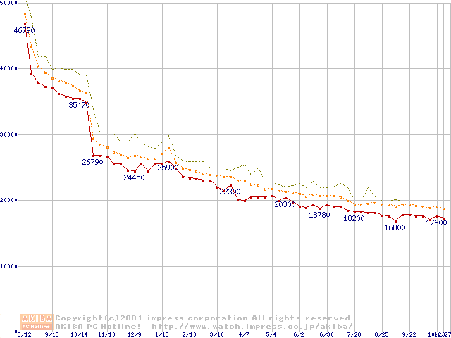 Pentium III 850MHz FC-PGA リテールパッケージの価格推移