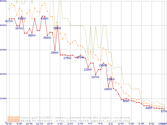 メモリ主要製品の最安値推移