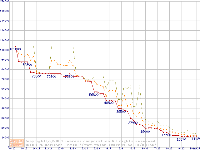 PC800 DRDRAM 256MB ECC対応の価格推移
