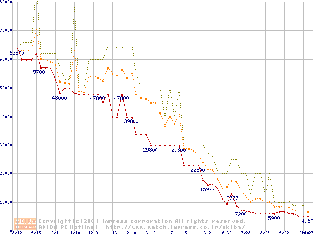 PC100 SDRAM DIMM CasLatency=2の最安値推移