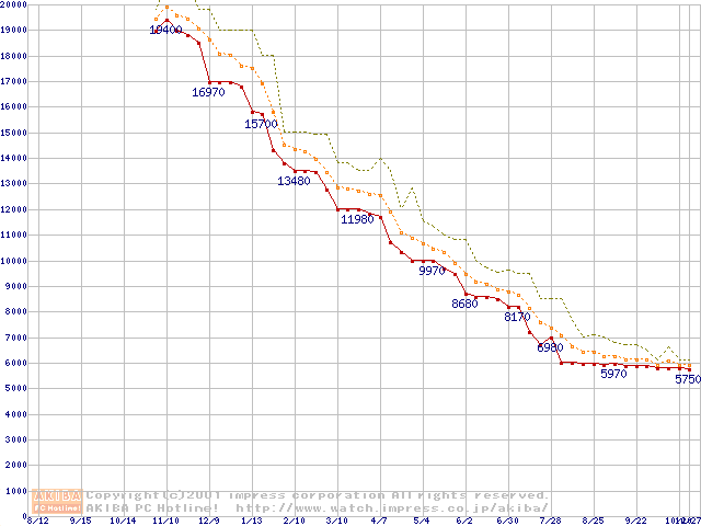 Celeron 766MHz FC-PGA リテールパッケージの価格推移