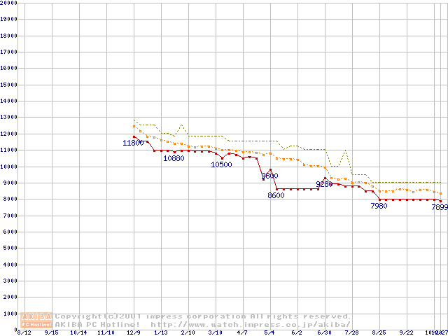 HDD 10GB~20GB未満(7200rpmクラス)の最安値推移