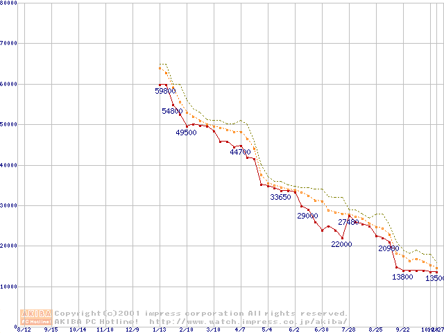Pentium 4 1.3GHz(423pin)リテールパッケージ(128MB)の価格推移