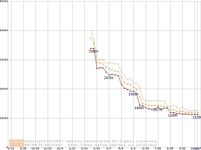 Athlon 1.2GHz(FSB266) (Thunderbird) バルクの価格推移
