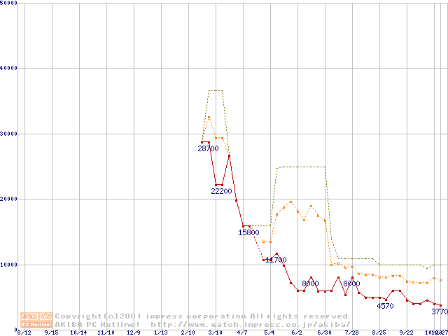 PC2100(DDR266) DDR SDRAM DIMM ECC対応の最安値推移