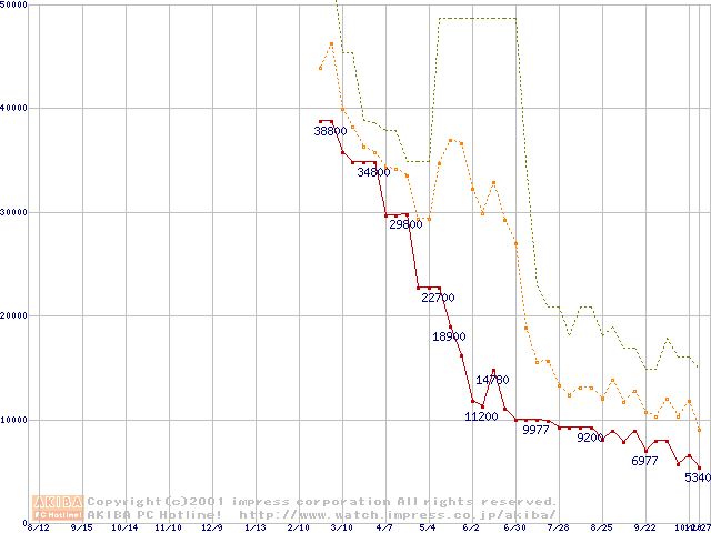 PC2100(DDR266) DDR SDRAM DIMM ECC対応の最安値推移