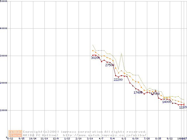Athlon 1.2GHz(FSB266) (Thunderbird) リテールパッケージの価格推移
