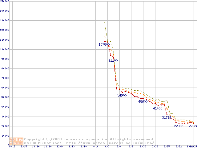 Pentium 4 1.5GHz(423pin)リテールパッケージ(256MB)の価格推移