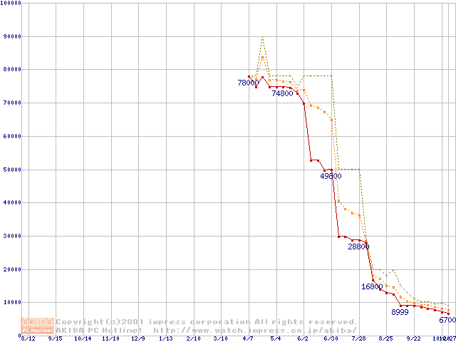 メモリ主要製品の最安値推移
