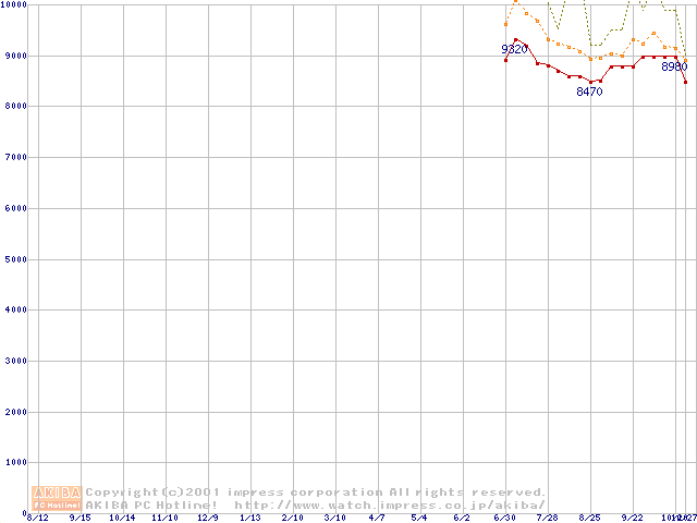 HDD 20GB~30GB未満(5400rpmクラス)の最安値推移