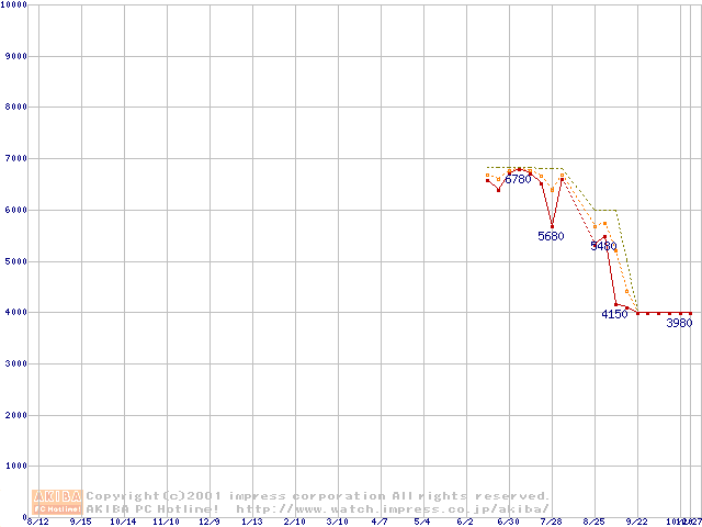 Socket 370 (PGA,FSB 100MHz,L2 64KB)の最安値推移