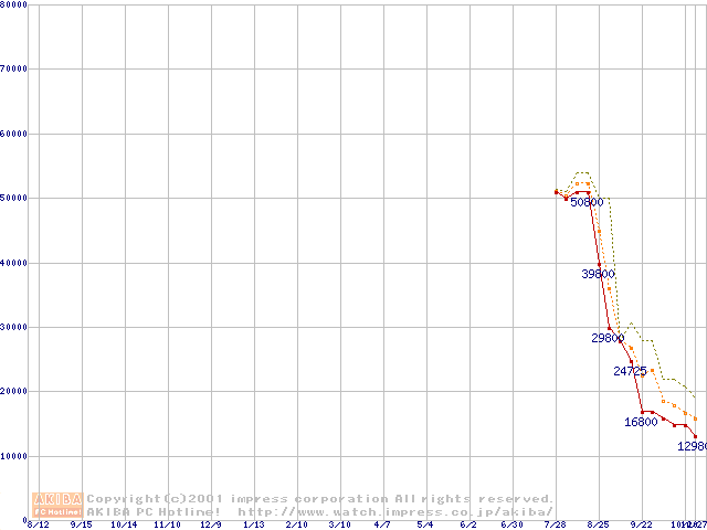 メモリ主要製品(最安値1万円以上)の最安値推移