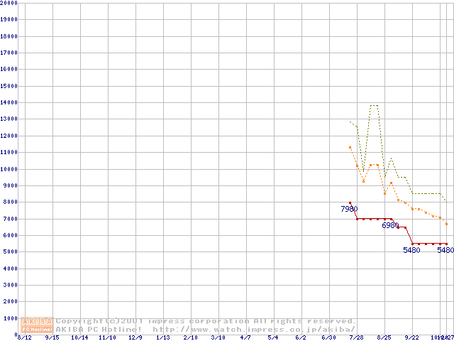 PC100 SDRAM DIMM CasLatency=2 ECC対応 Registeredタイプの最安値推移