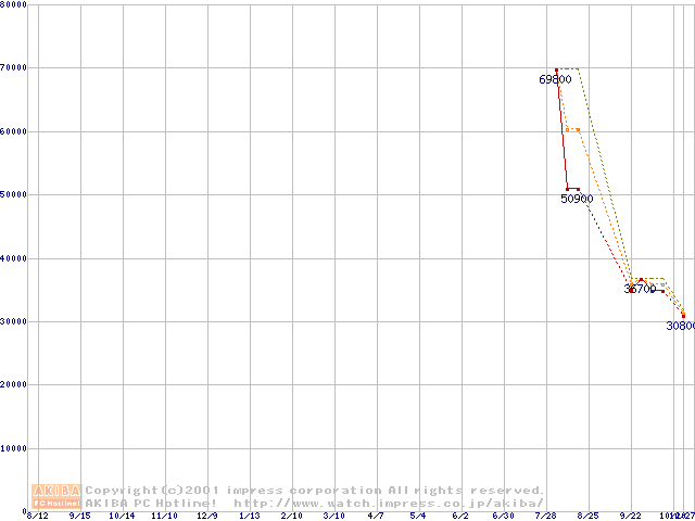 PC100 SDRAM DIMM CasLatency=2 ECC対応 Registeredタイプの最安値推移
