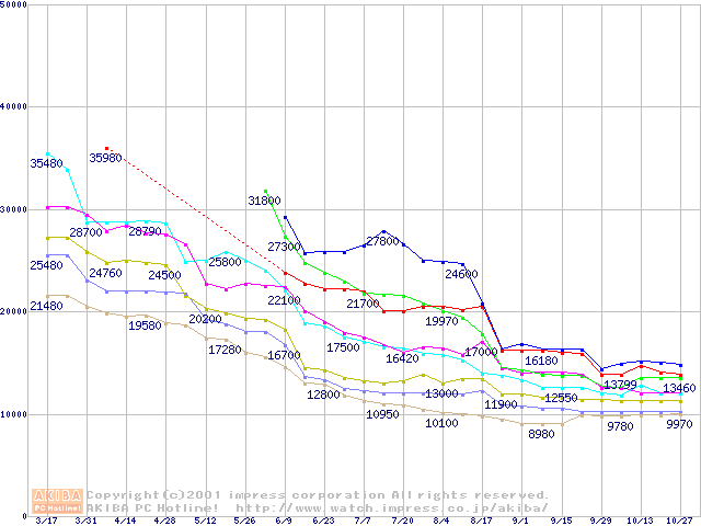 | [↓次グラフ]: | Socket A (Thunderbird,PGA,FSB 200MHz,L2 256KB)の最安値推移 |