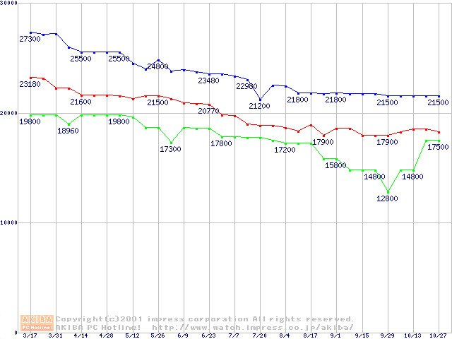 | [↓次グラフ]: | Slot 1 (SECC2,FSB 100MHz,L2 256KB)の最安値推移 |