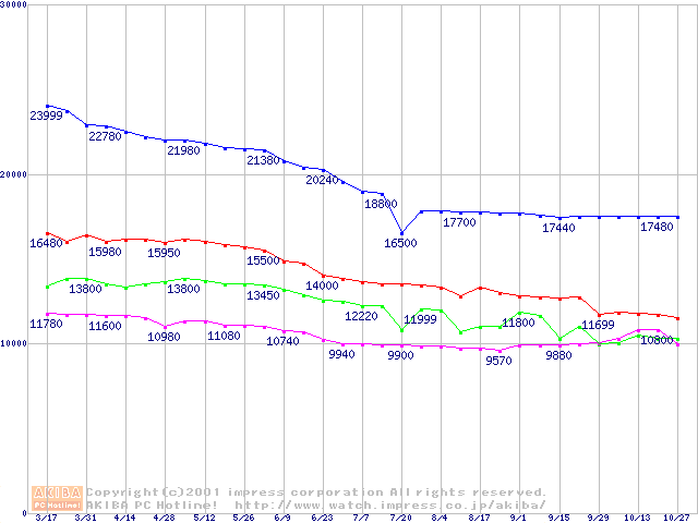 | DiamondMax Plus 60 (7200rpm,UltraATA/100)の最安値推移(テスト公開中) |