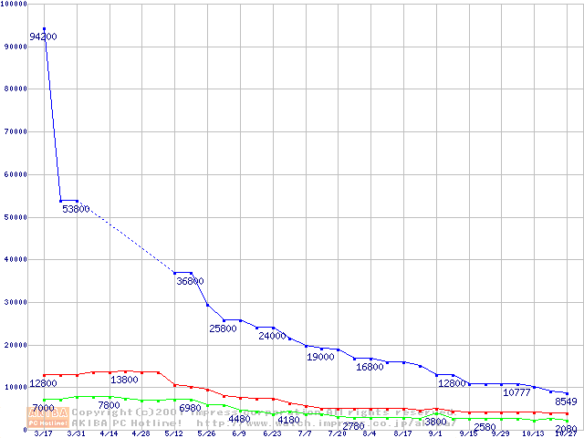 | [↑前グラフ]: | PC133 SDRAM DIMM CasLatency=3の最安値推移 |