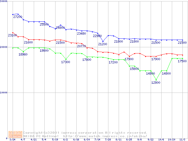 Slot 1・FSB 100MHzの最安値推移