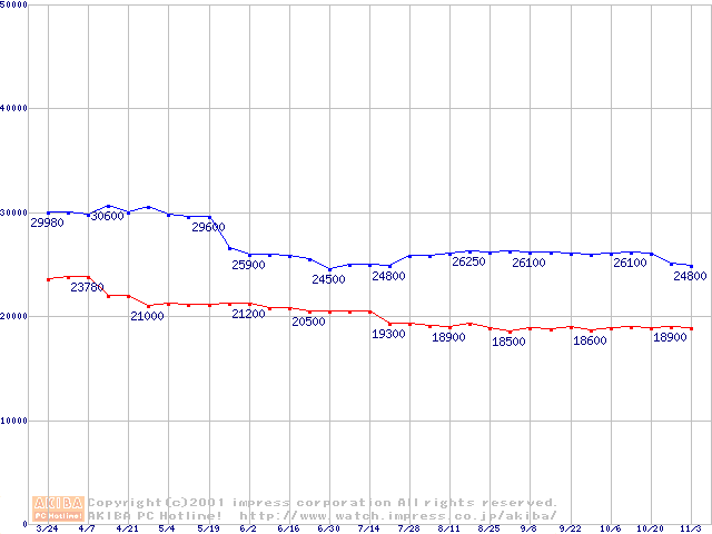 Slot 1・FSB 100MHzの最安値推移