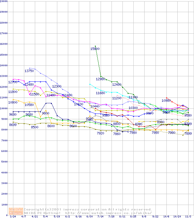 HDD主要製品の最安値推移