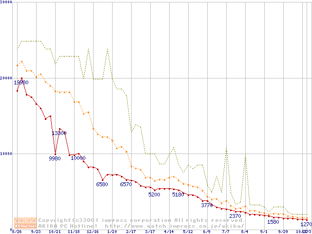 メモリ主要製品の最安値推移