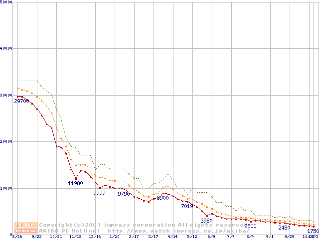 メモリ主要製品の最安値推移