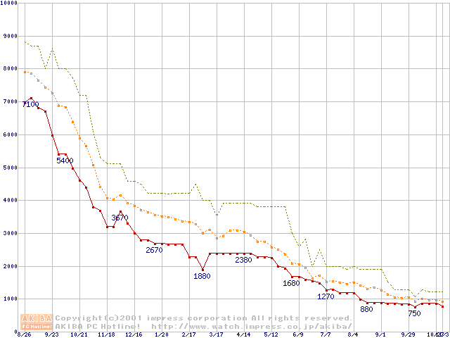 PC133 SDRAM DIMM CasLatency=3の最安値推移