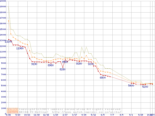 Celeron 667MHz FC-PGA リテールパッケージの価格推移