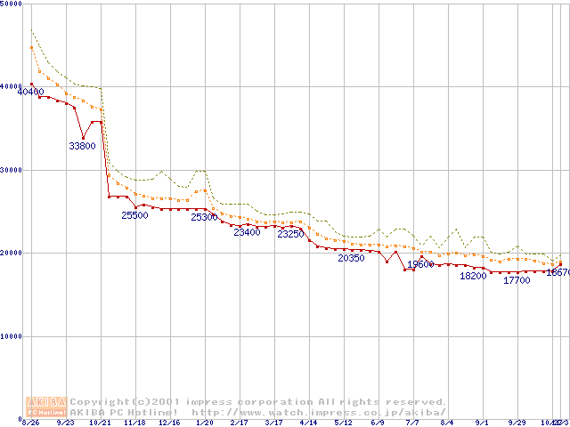 Pentium III 866MHz FC-PGA リテールパッケージの価格推移